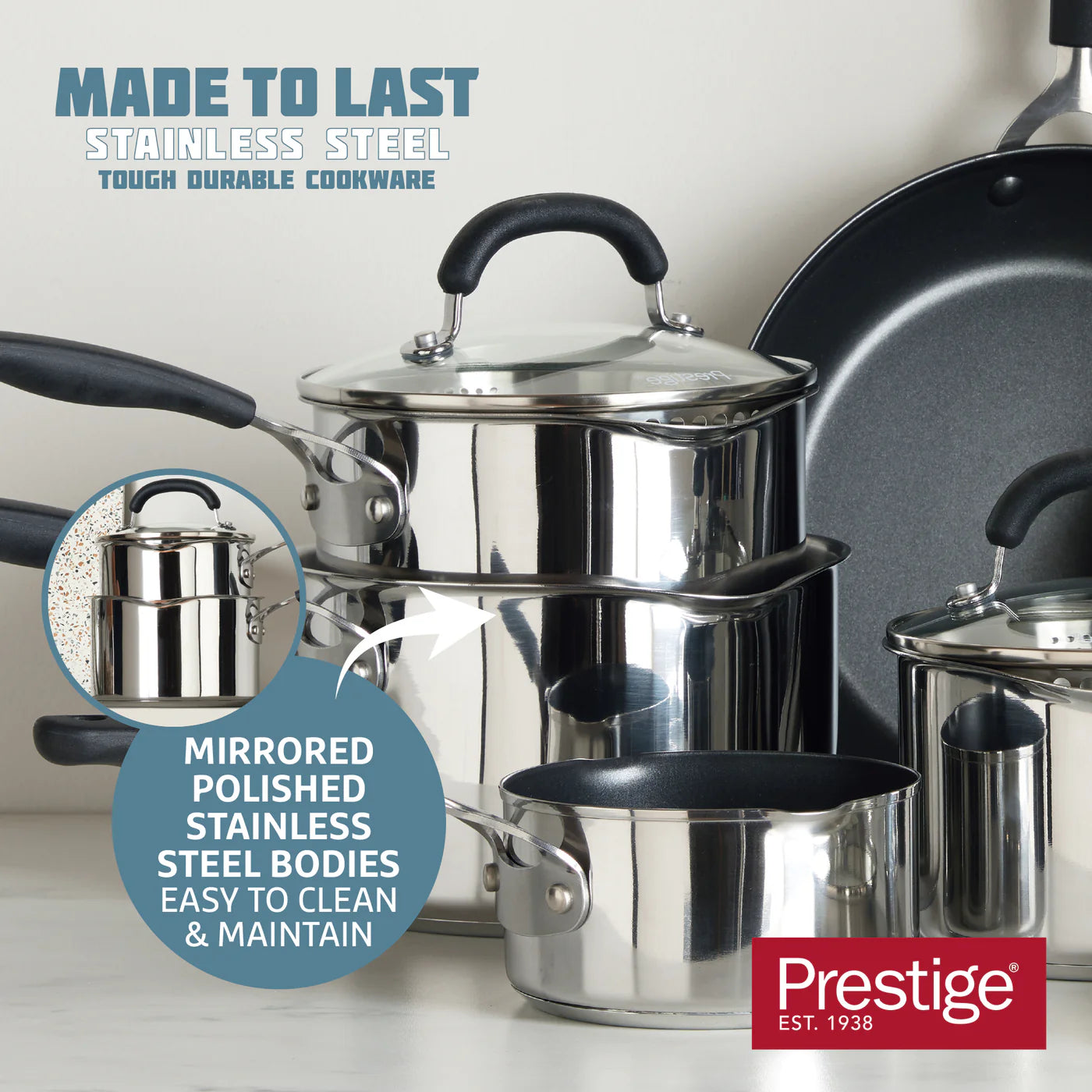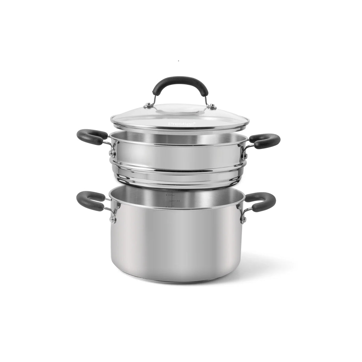 Add a splash of durability to your kitchen with our Prestige Made to Last: Stainless Steel Stockpot and Steamer. Perfect for everyday use to steam vegetables with its removable steamer and 24cm diameter, 5.86L capacity. Whether you're warming soup or creating a silky-smooth sauce, our Polished Stainless Steel Stockpot will be your go-to!