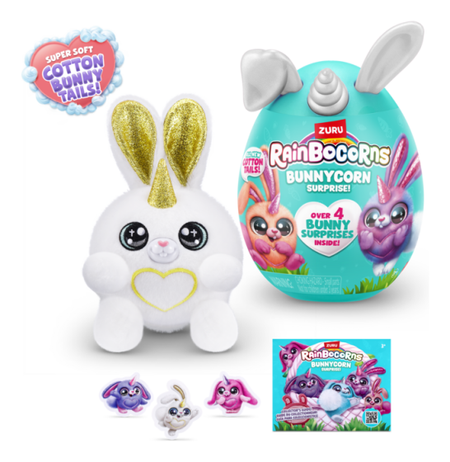 These Bunnycorns are ready to be your next fluffy bestie! Packed with over 4 surprises including a beautiful cotton tail and stickers. There are 6 bunnies to collect. These plushie pals are ready to bounce into your arms!
