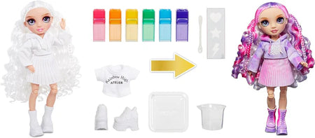 Rainbow High Watercolor & Create Fashion DIY Dolls inspire creativity. Watercolor and Create makes it so easy to design your own custom Rainbow High doll in so many ways, even Tie-Dye! You can even use the washable watercolors on your own hair! Then, just rinse & repeat and do it all over again.