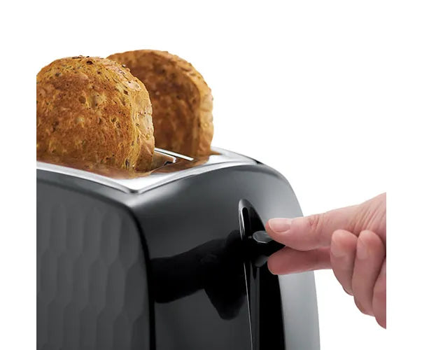 Keep your kitchen on-trend with the Honeycomb 2 Slice Toaster in a Premium Black with a Textured Design. Letting you give your kitchen a makeover without blowing your budget, this toaster not only brings style to your countertop but it also comes with convenient features too. Its High Lift Feature lets you lift your toast up to your fingertips so you can safely retrieve those smaller items, and the Frozen, Cancel and Reheat functions mean you can take care of your every toasting need!