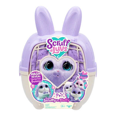 Each ScruffaLuvs begins as a matted ball of fur that needs your care. Wash and groom them to reveal which Bunny Scruff you have rescued! Through the magical wash-to-reveal process, your child will reveal their new cuddly friend. Brush their fur, add a collar, attach a hair clip, and then complete the adoption certificate to make them truly yours! There are 3 Bunny Scruffs to rescue, each in a different shade of purple with beautiful floral detailing in their ears. These super-soft ScruffaLuvs are perfect for snuggles and now come with a cozy carrier for adventures on the go. Rescue a Bunny Scruff and find your FFF - Fluffy Friend Furever!
