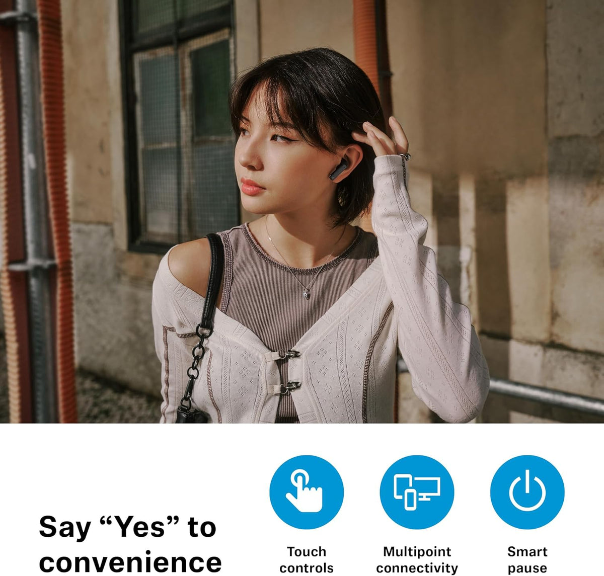 Effortless use, no manual needed – Switch between devices effortlessly with multipoint connectivity—calls, music, no fuss. Enjoy smart pause, intuitive touch controls, and pairing with up to 8 devices, all in a simple and ready-to-go design – no manuals, no apps, just press play.