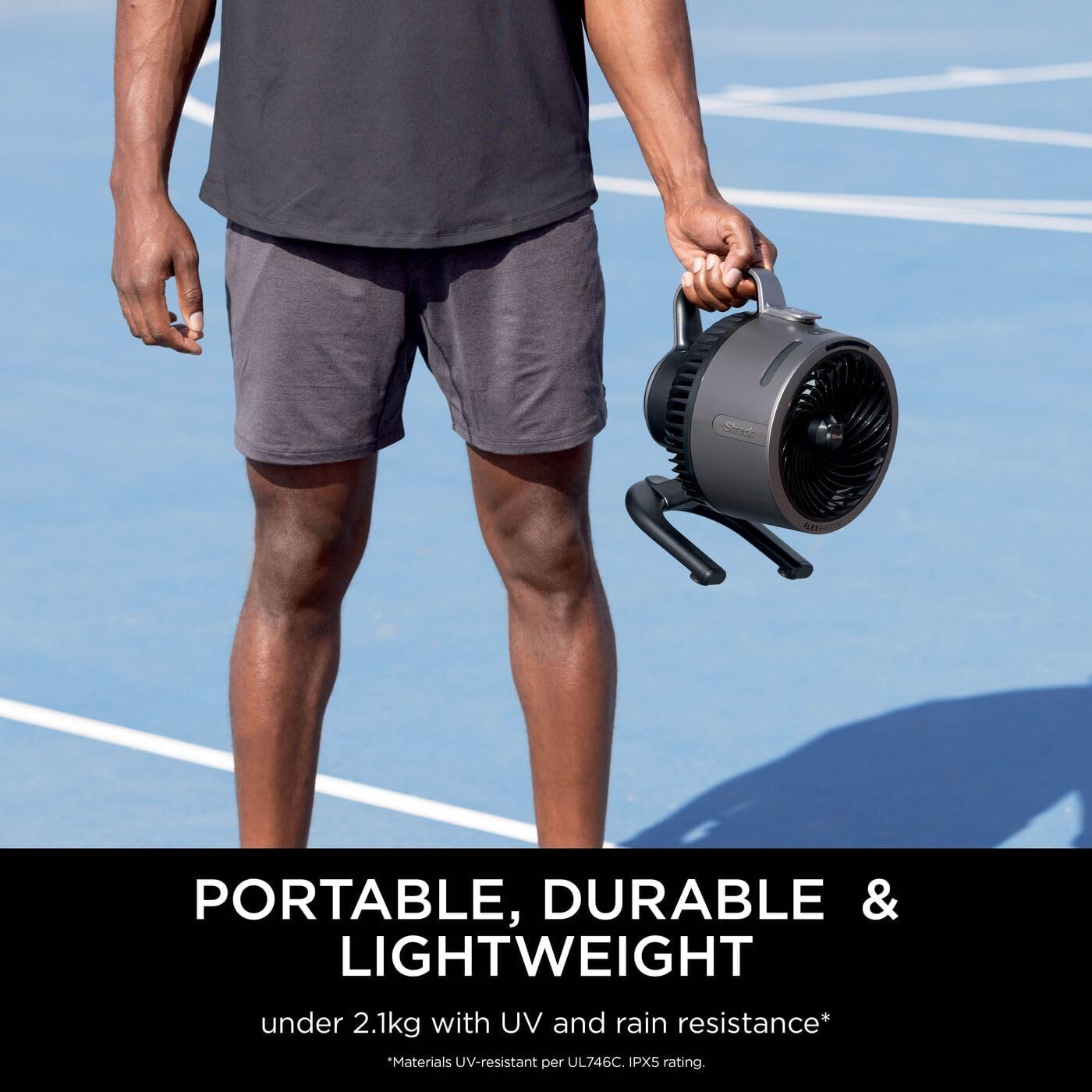 Durable outside, less disturbance inside: With a rain resistance IPX5 rating and resistant to UV *, the Shark FlexBreeze HydroGo is tough enough to take-on the outdoors. While indoors, its quiet operation ensures minimal disturbance---perfect for sleeping or working from home. Included in the Box: Shark Fan, Charger