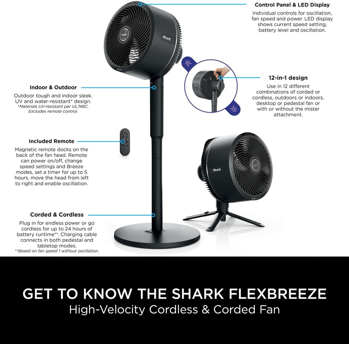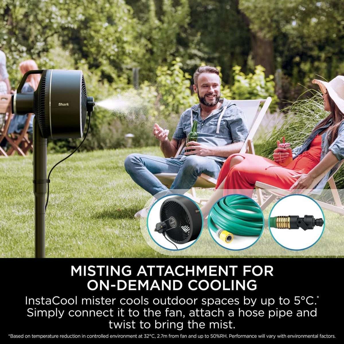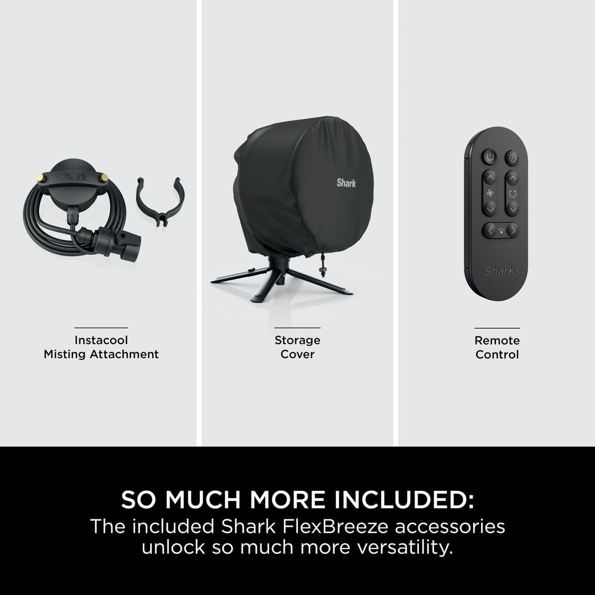 Shark FlexBreeze Hybrid Indoor & Outdoor Fan with cover, pedestal stand, remote controller & InstaCool Misting Attachment