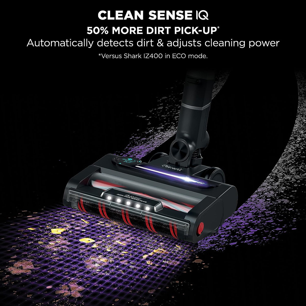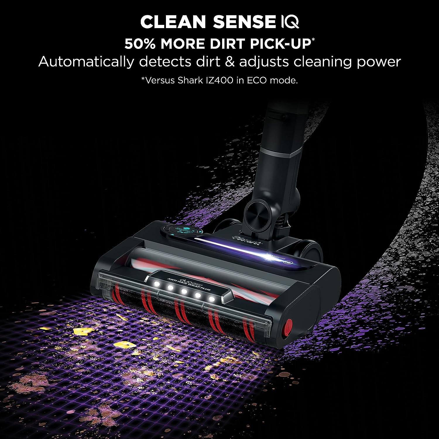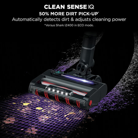 Clean Sense IQ automatically detects dirt and adjusts cleaning power for up to 50% more dirt pick-up*. Tackle any cleaning task with optimised suction performance. An intelligent indicator in the floorhead illuminates as the suction automatically increases to meet a cleaning challenge and decreases again when the debris is cleared. *Versus Shark IZ400UKT in ECO mode.