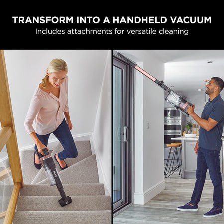 Transform into a cordless handheld vacuum cleaner at the touch of a button, perfect for cleaning stairs, soft furnishings, in the car and more. Attach the wand in handheld mode to easily clean up high and extend your reach behind furniture.