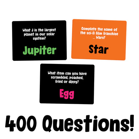 - EASY TO PLAY: Simple to grasp family friendly trivia game with 400 questions!