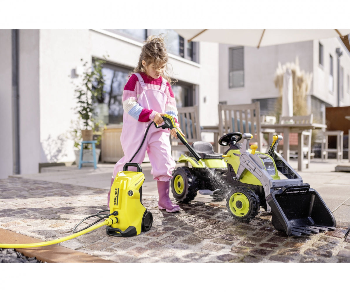 With your Kärcher high pressure trolley K4, you will be able to help mom and dad to clean the garden!
