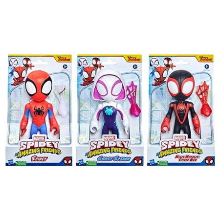 It's Spidey Time! Marvel's Spidey and His Amazing Friends follows the adventures of Team Spidey and all their heroic friends. Super Hero Figures are inspired by the popular preschool show and features a 4-inch-scale posable action figure. Kids 3 and up can imagine their very own adventures with their favorite characters, or re-create favorite moments from the show. Each surprise toy figure comes in a box with a peek-a-boo window. Collect all 7 characters! (Each sold separately. Subject to availability.) Copyright MARVEL. All trademarks and registered trademarks are the property of their respective owners. Hasbro and all related terms are trademarks of Hasbro.