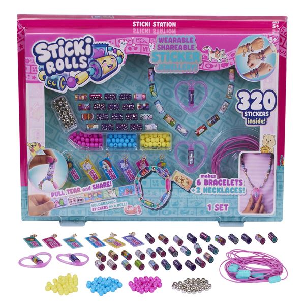 - DIY STICKER BRACELETS & NECKLACES: Build 6 bracelets and 2 necklaces using the 32 Sticki Rolls, 144 colorful beads and 2 necklace pendants that hold and dispense your favorite Sticki Roll stickers, plus six Charm Tags for customized decoration!