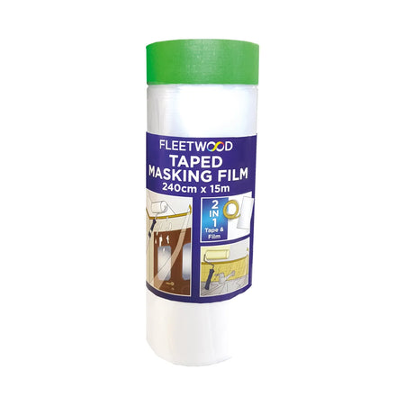 Designed to protect surfaces while painting, Fleetwood Painters Pre-Taped Masking Film prevents paint or other substances from marking or damaging surfaces. Featuring a taped edge for easy fixing, the film can be left in place for up to 14 days without the tape leaving any residue. The product is available in three distinct sizes – a 55 cm x 30 metres roll, a 140 cm x 30 metres roll, and a 240 cm x 15 metres roll. This enables you to select the sizing that best suits your needs and work environment. The Fleetwood Painters Pre-Taped Masking Film is backed by a full product guarantee.