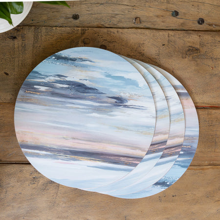 Dinnertime will quickly become the most peaceful time of the day with these round place mats on hand. The natural pink, blue and grey palette of the soothing ‘Tranquillity’ placemat design echoes a peaceful summer sunset, while the clever features reduce the bustle and hassle that can often come with cooking. The round shape is lovely to look at, with a luxury, lacquered surface that’s wonderfully smooth to touch. It’s stain resistant, easy to wipe clean and will work hard to protect your surfaces. At 0.5 cm thick and backed with cork, the mats will keep hot dishes away from your tabletop with a heat-resistance of up to 120°C. To seal the deal, the edges of the mats are lacquered too, so they’re durable and resistant spills and moisture from wet plates and dishes.