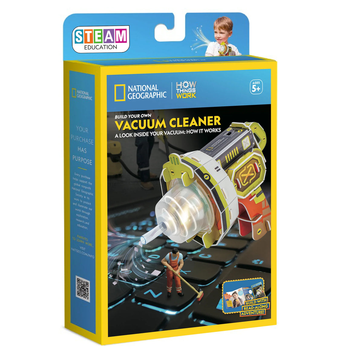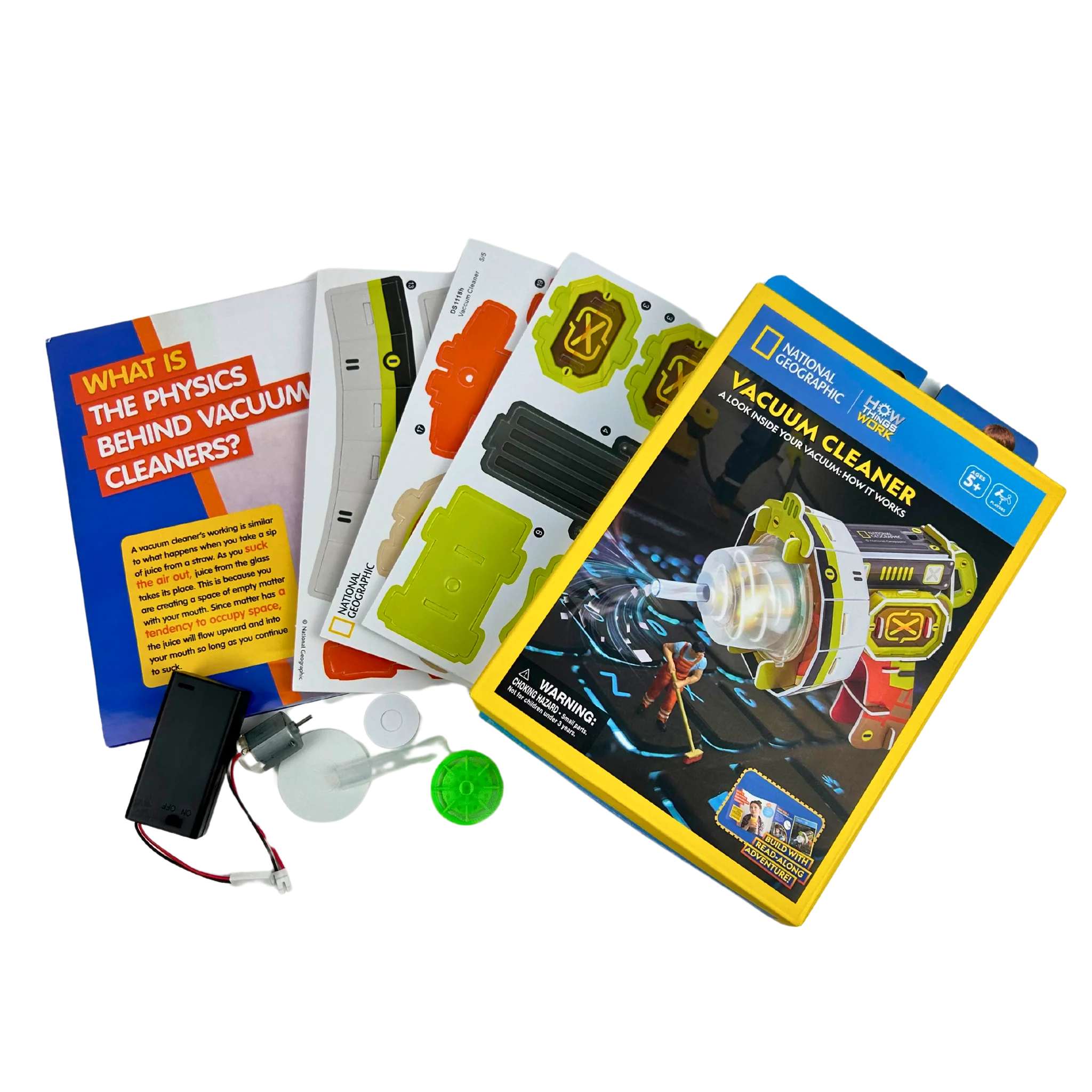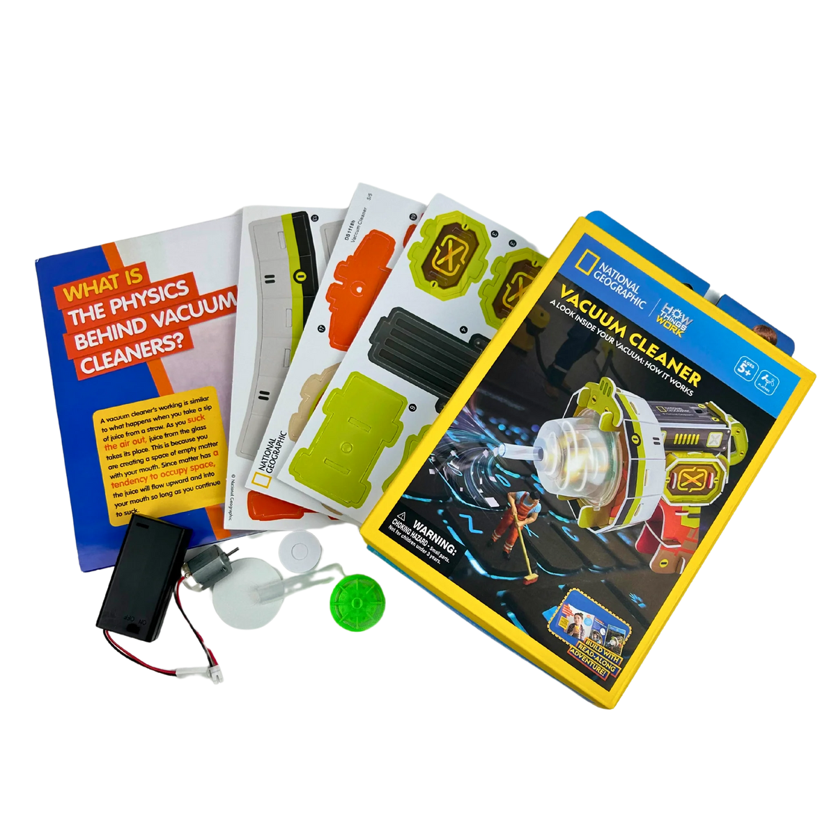 Time for some spring cleaning! Discover the fascinating world of vacuum cleaners with this National Geographic How Things Work build-and-learn kit! Perfect for curious minds aged 5 and up, this STEAM education set lets children construct their own working vacuum cleaner whilst learning about the science behind it.