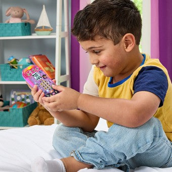 Can you hear the call for adventure?! It's the Dora Adventure Calls Learning Phone by VTech®! Chat with Dora, Backpack, Benny, Tico, Boots, Map and Swiper with this interactive role-play smartphone! Engage in exciting activities and cool features that help test your skills with counting, logic, music recognition, matching and more. You can also leave fun virtual voice messages for Dora, Backpack, Benny, Tico, Boots, Map and Swiper, and use voice activated play to make pretend phone calls! You can choose your own virtual ringtone too, and enjoy exciting responses in both English and Spanish! Features a colour-changing light bar to add to the fun!