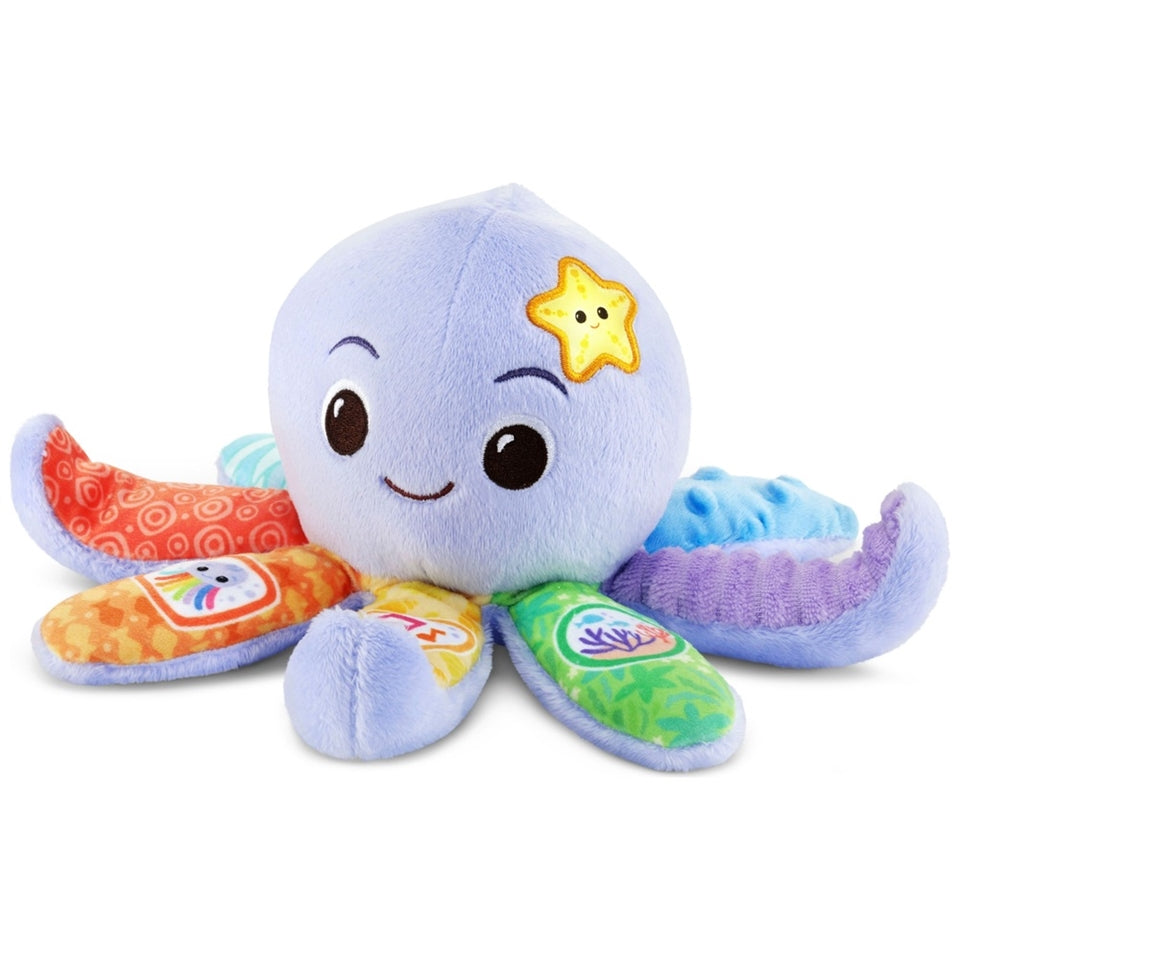 Meet Snuggles the Octopus! Colourful legs and textures promote tactile discovery and buttons introduce songs, nature sounds and educational phrases.