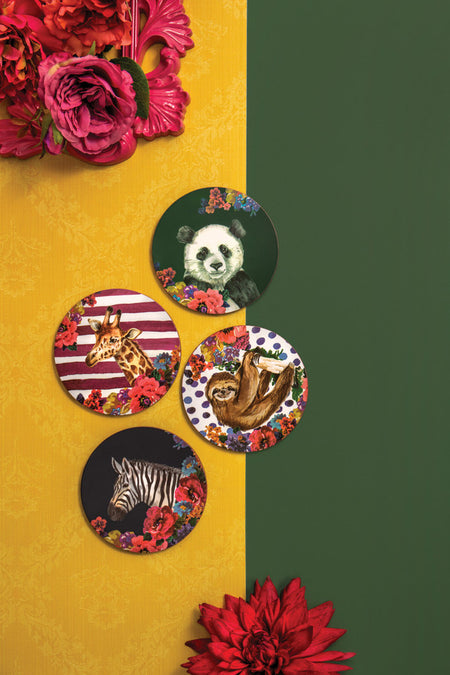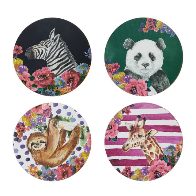 Bring the spirit of the safari into your home with these Cork-Backed Round Coasters from Mikasa. Featuring unique designs originally hand painted in our UK Studio, this 4pc coaster set is the perfect addition to any nature lover's collection. Each coaster showcases an individual animal illustration, including a giraffe, a panda, a zebra, and a sloth. You'll love the detailed prints and vivid colour palette that's guaranteed to brighten up any table. These coasters feature a durable cork backing that prevents scratches and provides a non-slip grip, so your drinks keep secure on top, while keeping tables protected at the same time. Also includes a 10-year guarantee. Designed in our UK Studio, the Wild at Heart collection features hand-painted animal designs to invite nature, wildlife, and a touch of fun into our homes. Complete the collection with matching stainless steel water bottles and fine china mugs, as well as cork-backed placemats.