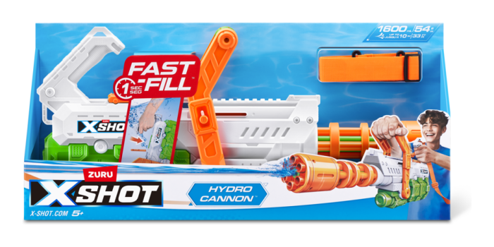 The XSHOT Fast-Fill Hydro Cannon is here is to blast your opponents out of the water. XSHOT Fast-Fill allows you to refill your blaster in 1 second and get back to the water blasting action long before your opponents. Just dunk, fill and close with rapid sealing technology. This massive blaster holds 1600ml / 54 Fl Oz. of water, blasts a whopping 10m / 33 feet and comes with a shoulder strap to assist in the blasting action.