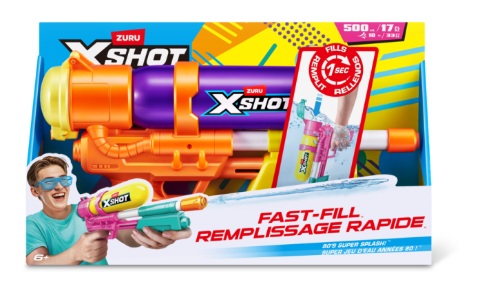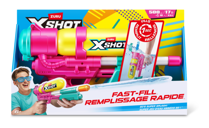Channel vintage vibes with the XSHOT Water Fast-Fill 80s Super Splash Water Blaster by ZURU – the ultimate throwback blaster with modern soaking power! Designed for kids, teens, and adults who love backyard battles, this bold, retro-styled blaster combines eye-catching colors and shapes with performance-driven features. Using XSHOT’s signature Fast-Fill technology, you can refill the Retro Fast-Fill in just one second – simply dunk, fill, and seal shut. With a powerful water stream that blasts up to 33 feet (10 meters), you’ll have the range to drench opponents before they even see you coming. The large 750 ml (17 fl. oz.) water tank lets you stay in the game longer without frequent refills, making it ideal for beach days, poolside fun, or backyard ambushes. The lightweight yet durable design makes it easy to handle, even for younger players, while the bold retro theme ensures you’ll stand out in any water fight. Perfect for ages 6+, the XSHOT Water Retro Fast-Fill Water Blaster by ZURU delivers fast refills, high-powered blasts, and non-stop outdoor fun. Get ready to soak, splash, and make waves this summer with a blaster built for style and performance!